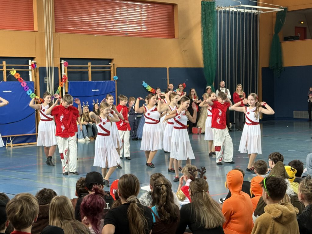 Neben diversen Spielen wie Dosenwerfen, Bobbycar-Parcours und Säckchen-Zielwurf konnten sich die Schülerinnen und Schüler mit leckeren Krapfen stärken und ausgelassen zur Faschingsmusik tanzen. Die Mischung aus Spiel, Bewegung, Musik und gemeinsamer Feier sorgte für eine gelungene Veranstaltung.