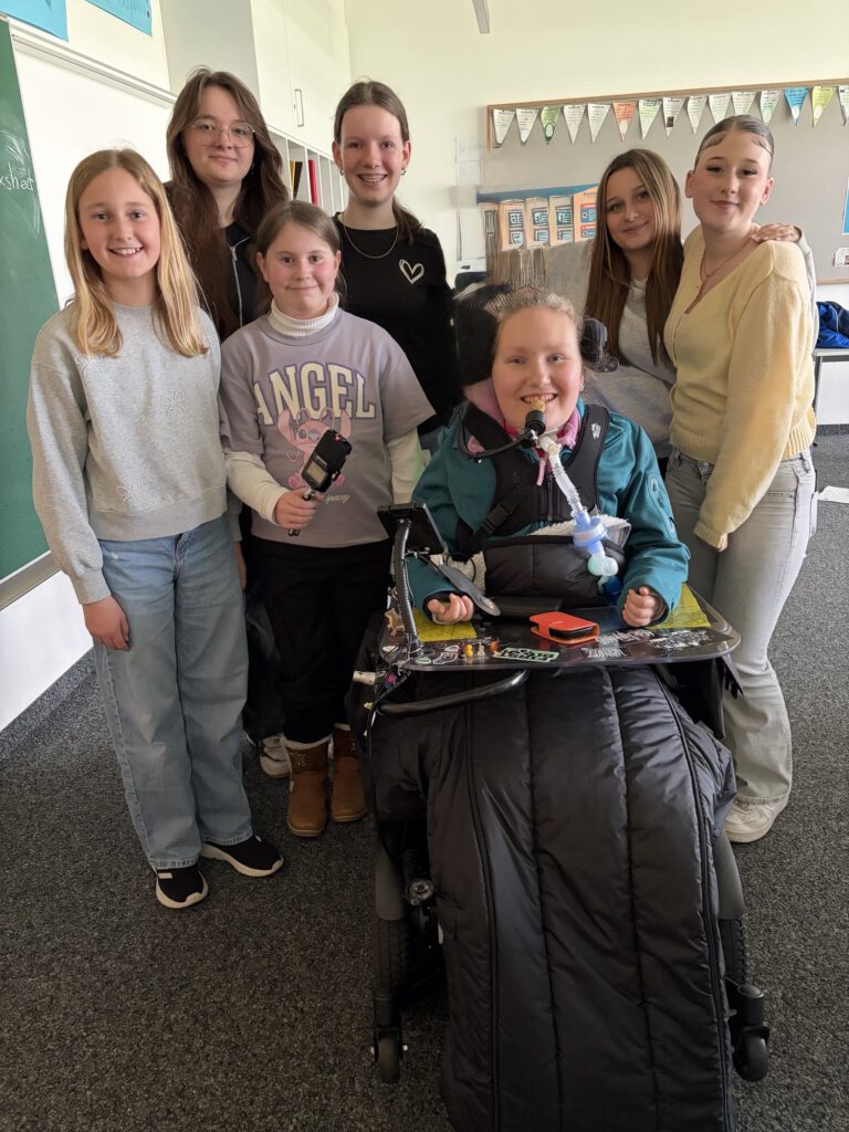Ein besonders bewegendes Gespräch führten sie mit Emily, einer Schülerin der 6. Klasse der Realschule Rain. Nach einem Unfall ist sie schwer körperlich beeinträchtigt und berichtete offen aus ihrem Alltag. Sie erzählte, wie sie die Herausforderungen des Schullebens meistert und beantwortete auch persönliche Fragen – etwa, ob sie manchmal traurig über den Unfall ist oder wie sie mit ganz typischen Teenager-Themen wie Streit zuhause umgeht.