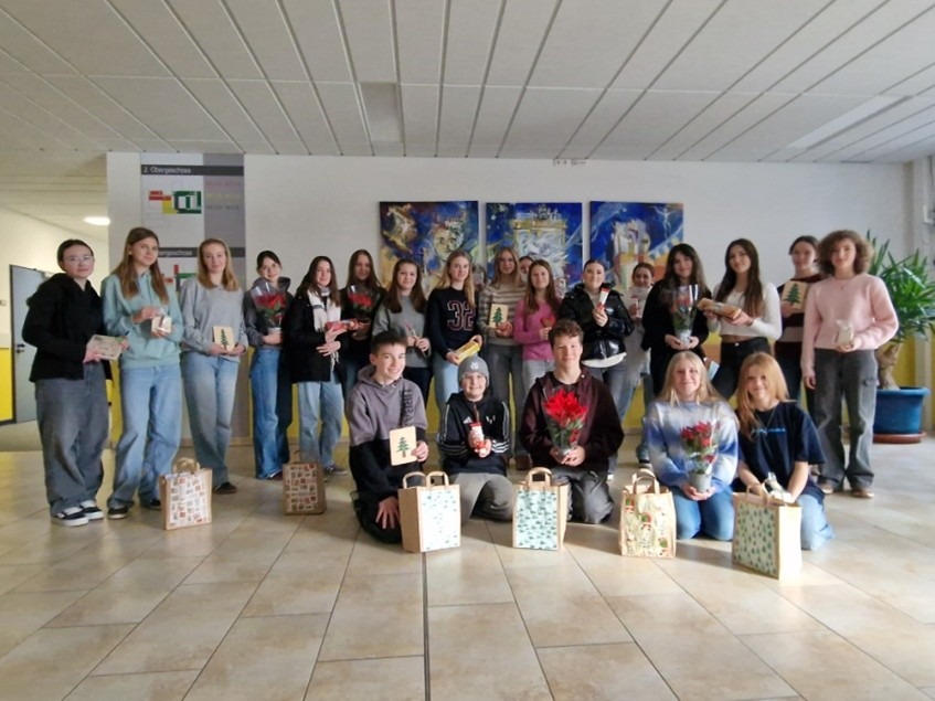 Traditionell besuchen seit 2006 SchülerInnen der Realschule freiwillig alte Menschen an einem Freitag Nachmittag zu Hause in ihren Wohnungen und nehmen sich Zeit für sie. Am 21. November waren 23 Mädels und Jungs aus den 8.-10. Klassen unterwegs und haben einen Nachmittag mit den älteren Herrschaften bei Tee und Plätzchen geplaudert, Erfahrungen übers Leben ausgetauscht oder gespielt. Dabei werden wie immer kleine Geschenke verteilt: Weihnachtssterne von Firma Hartmann, selbstgebastelte Karten, eine Weihnachtsgeschichte, Zettelboxen mit einer dekorativen Kerze von Erika Woisetschläger-Kapfer. Firma Schiml spendet jährlich Backwaren und bereitet den älteren Herrschaften damit eine ganz besondere Freude. Zusätzlich bestückt Frau Feichtinger die Tüten noch mit Servietten, Kosmetikartikeln, Schals und Plätzchen oder Schokolade.